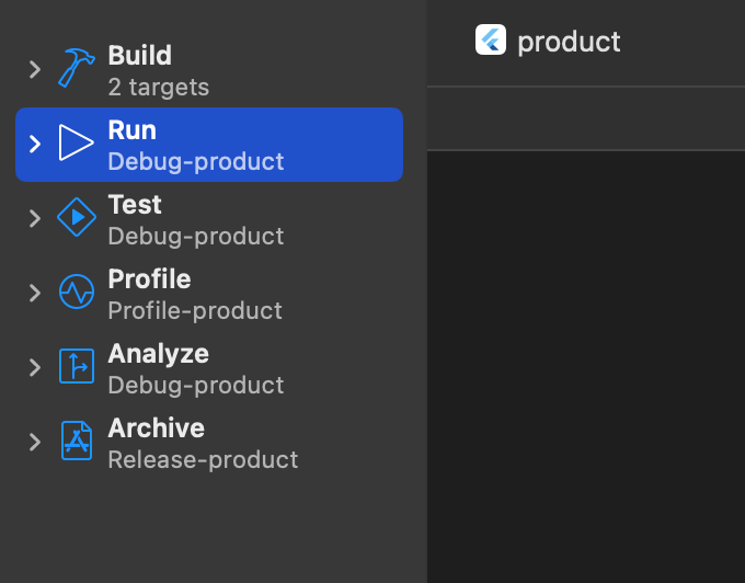 - Release-product: 배포할 앱을 만들 때 사용할 빌드