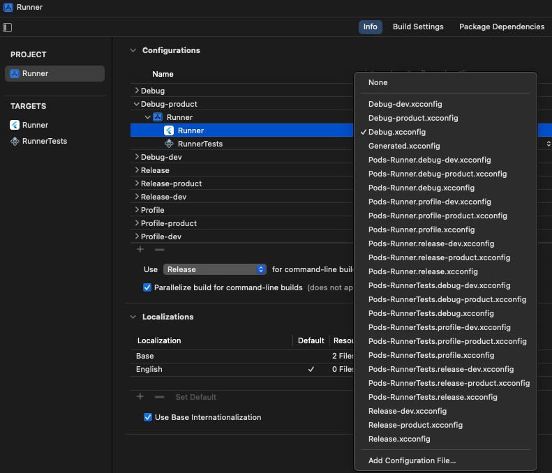 플러터에서 iOS의 Flavor를 나누는 방법은 다음과 같습니다.