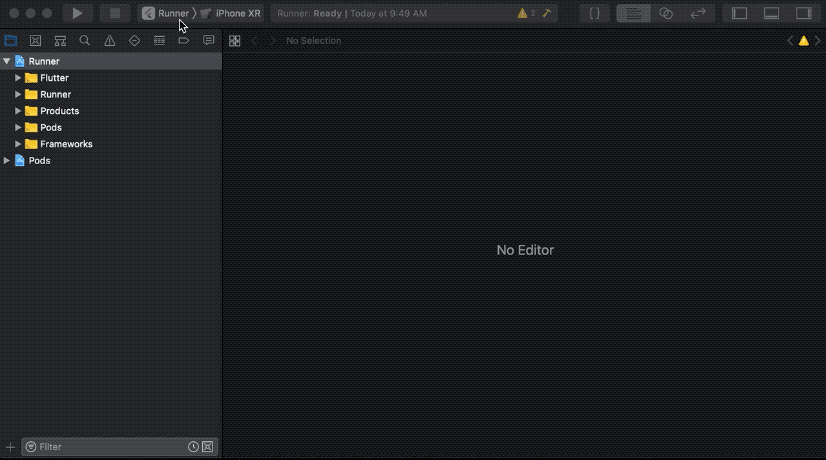 1. XCode를 사용해서 현재 프로젝트의 Runner.xcworkspace를 열어줍니다.