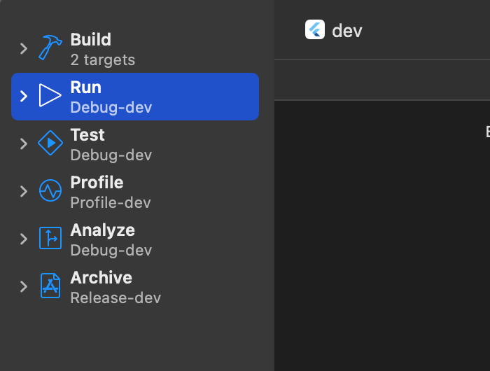 - Profile-dev: 디버깅할 때 앱 상태를 확인