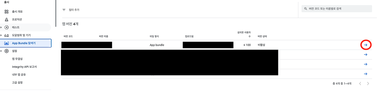 App Bundle 탐색기에 들어가서 특정 앱 버전을 클릭하고