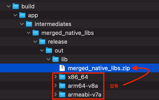 압축파일 이름은 아무거나 해도 상관없지만 저는 merged_native_libs.zip로 했습니다.