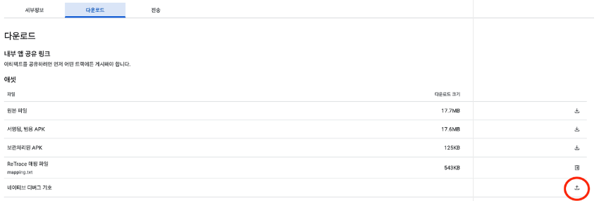 다운로드 탭에 "네이티브 디버그 기호" 부분에 업로드 합니다.