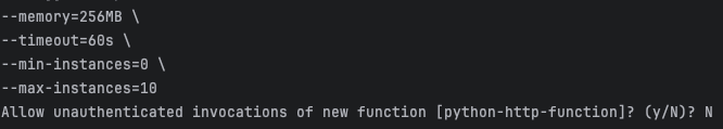 - --trigger-http: HTTP 요청으로 함수를 트리거 하도록 설정
