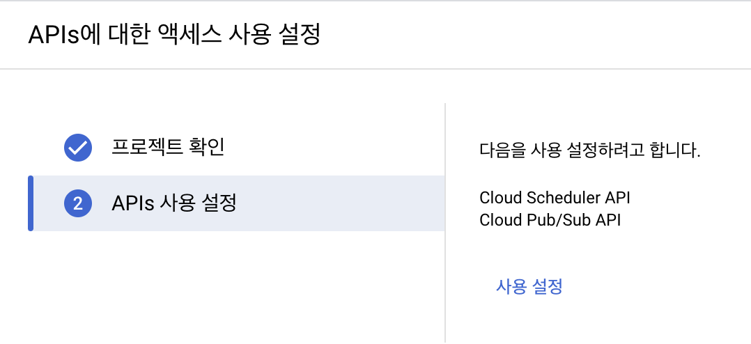 - Cloud Scheduler API를 사용 가능 상태로 설정