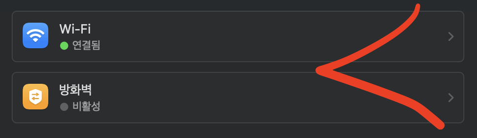 - 맥북에서 사용중인 백신의 필터와 방화벽 확인