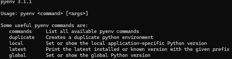 pyenv : The term 'pyenv' is not recognized as the name of a cmdlet, function, script file, or operable program. Check the spelling of the name, or if a path was included, verify that the path is correct and try again.