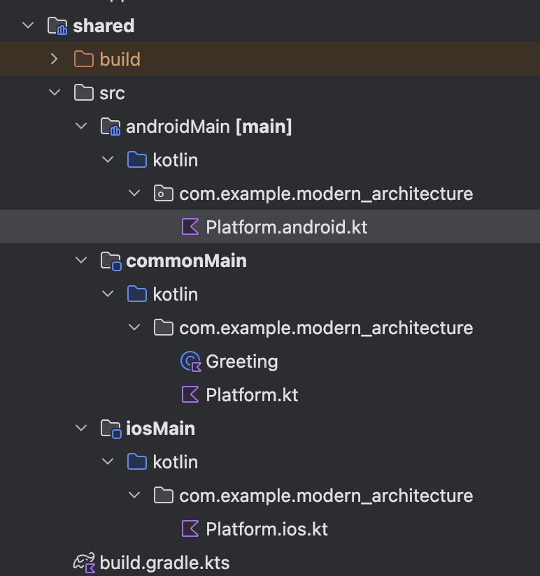src 밑에는 androidMain, commonMain, iosMain 이렇게 3개의 모듈이 존재합니다.