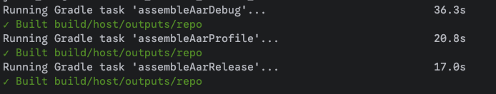 그럼 다음과 같이 진행되면서 aar 파일을 자동으로 만들어줍니다.