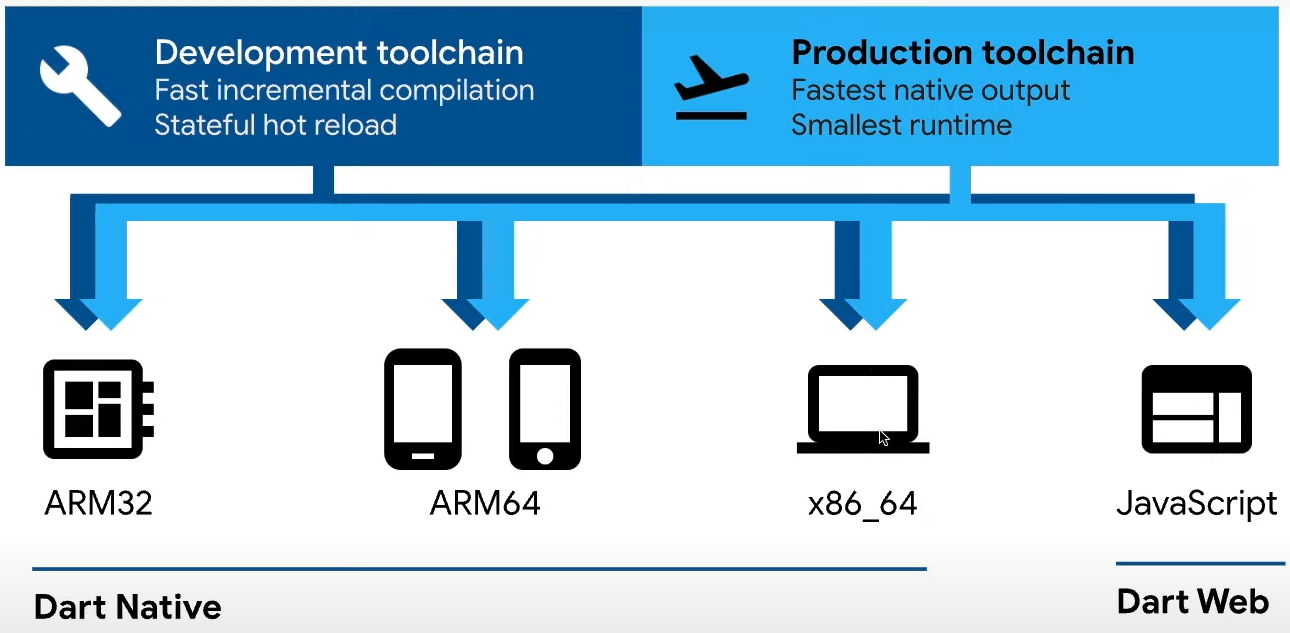 - Dart를 사용해서 Flutter를 개발할 수 있음