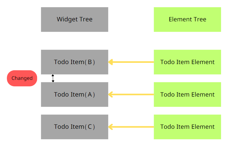 정렬이 발생하더라도 Widget을 재생성 하는 것이 아닌 "재활용"합니다.