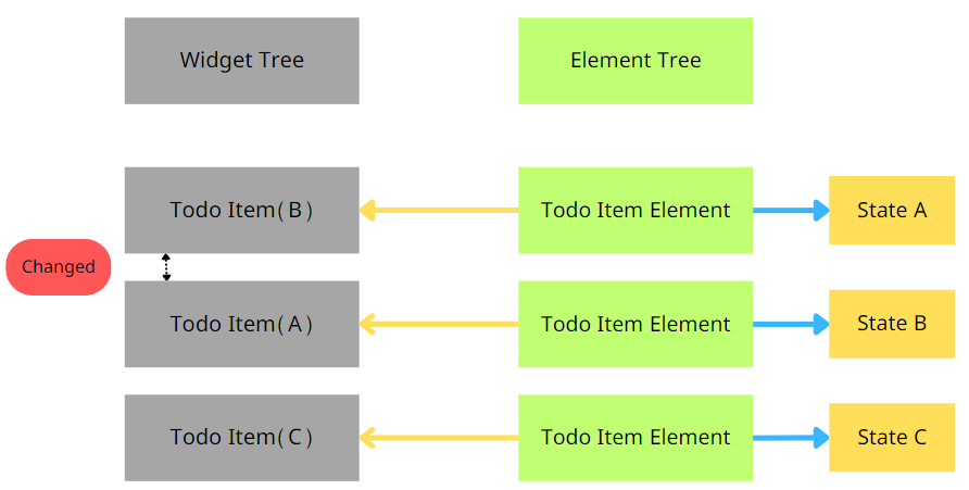 그 이유는 각각의 Widget에 대한 State는 Widget Tree에서 관리하고 있지 않기 때문입니다.