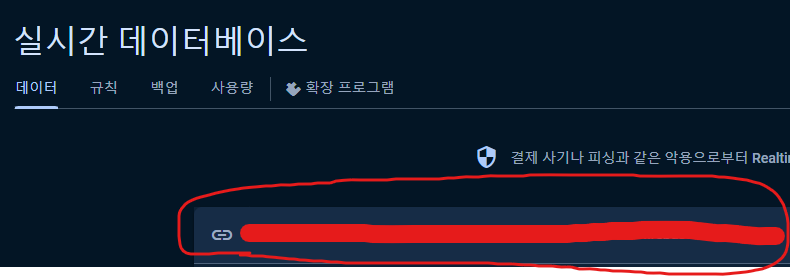 자신의 Firebase 프로젝트의 Realtime Database에 들어가면 아래의 부분을 복사해서 붙여 넣으면 됩니다.