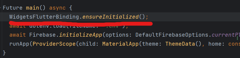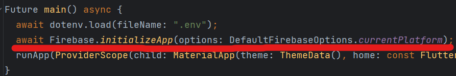 다음과 같이 밑줄 친 부분을 main.dart에 추가하여