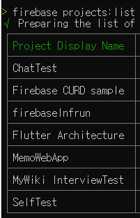 그리고 다음과 같은 커맨드를 사용하여 현재 생성되어 있는 Firebase Project를 확인할 수 있습니다.