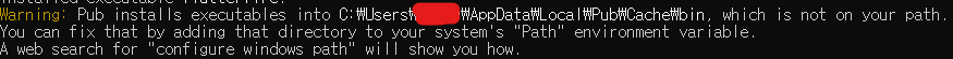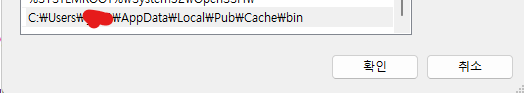 4. 그리고 방금 경고창에서 나온 C:\Users\{UserName}\AppData\Local\Pub\Cache\bin를 복사하여 추가해 줍니다.