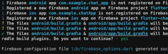 (각 패키지를 최신 버전으로 업데이트하기 위해선 flutterfire configure 커맨드를 사용할 수 있습니다.)