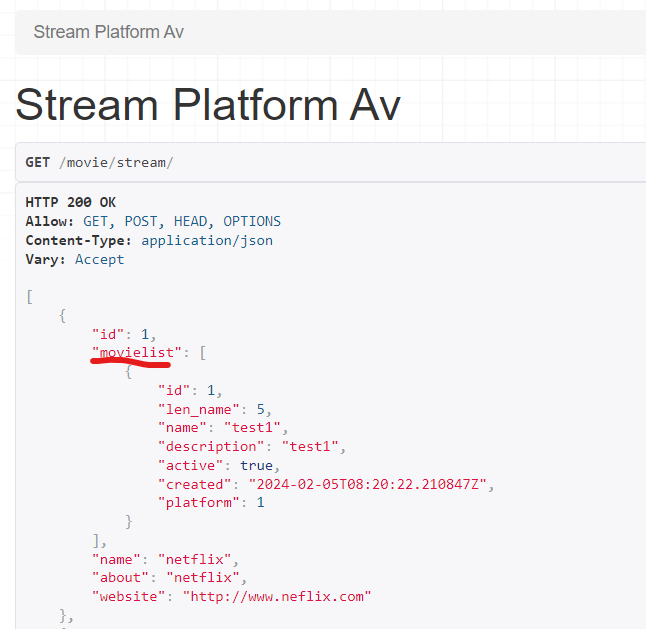 위 코드에서 Movie Model에서 StreamPlatform과 연결한 이름(related_name)을 찾습니다.