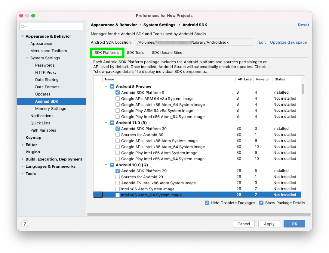 2. 새롭게 체크해서 다른 SDK를 전부 설치할 필요 없습니다.