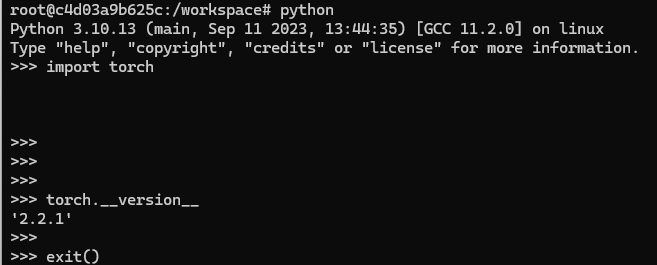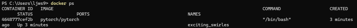 즉, PyTorch 이미지를 사용해서 Docker 컨테이너를 만든 게 된다.