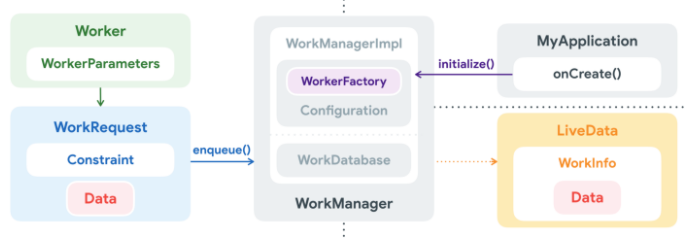 WorkManager는 다음과 같은 컴포넌트를 갖고 있다